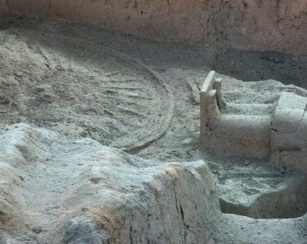 The floors of the galleries were made of rammed earth covered with fired tiles.