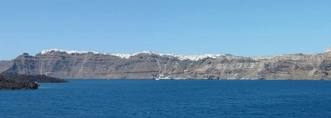 That isn't snow on the cliff it is the white buildings of the town of Thira.